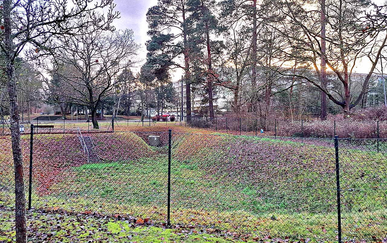Das Regenwasserversickerungsbecken an der Frankfurter Allee wartet auf Regen. Am 1. November begann das neue hydrologische Jahr. Der Niederschlag seitdem hielt sich in Grenzen. Dabei ist der Niederschlag vor allem im Winterhalbjahr außerordentlich wichtig für die Grundwasserneubildung. Denn im Sommer wird sämtlicher Niederschlag sofort von den Pflanzen für ihr Wachstum verbraucht. Der vergleichsweise feuchte Sommer in diesem Jahr konnte dementsprechend nicht für ein Auffüllen der Grundwasserspeicher beitragen.