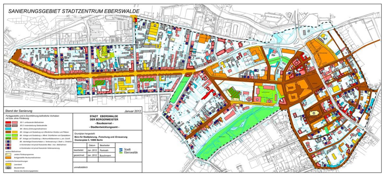 "Die Innenstadt bleibt Aufwertungsschwerpunkt, um den Sanierungsprozess fortzusetzen und weiteren Bevölkerungszuwachs zu generieren. Eberswalde kann mittlerweile auf 20 Jahre Stadtsanierung zurückblicken - und hat damit große Erfolge im Hinblick auf die Wiedergewinnung der Stadtmitte, die Steigerung der Attraktivität und Anziehungskraft und die steigende Nachfrage 'nach der Mitte' erzielt." (INSEK Seite 58)